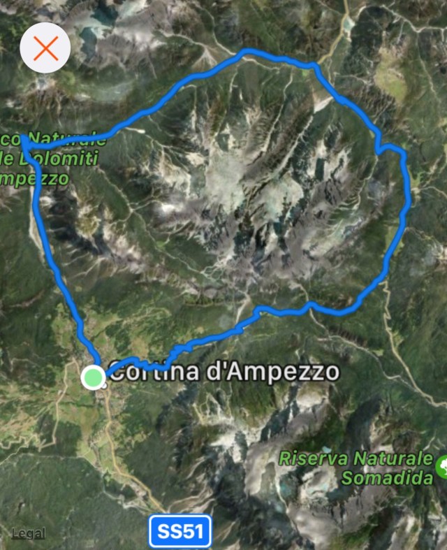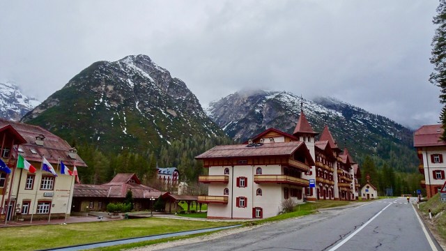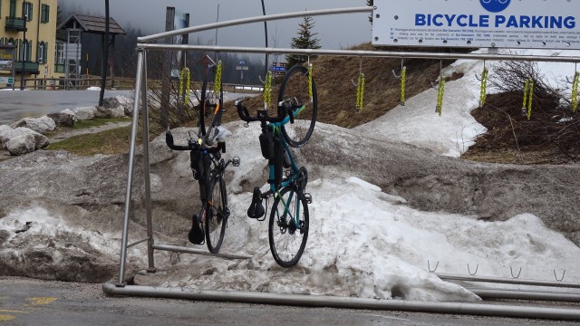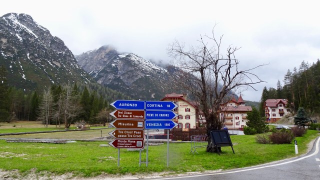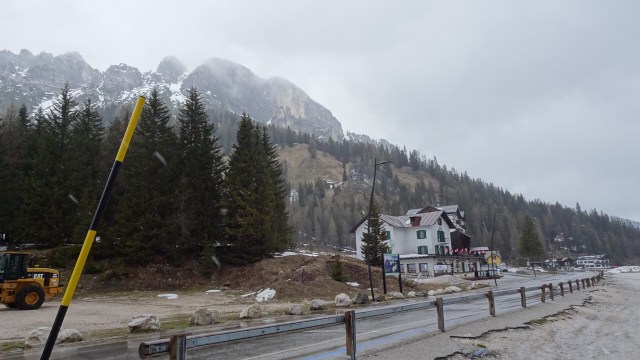 At the junction, we then turned left towards Cortina. The weather was a lot more comfortable now…4 degrees Celsius. A pretty junction that we will pass again tomorrow (heading out to Dobbiaco).