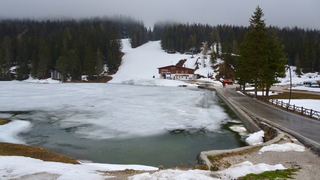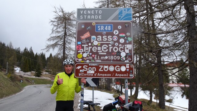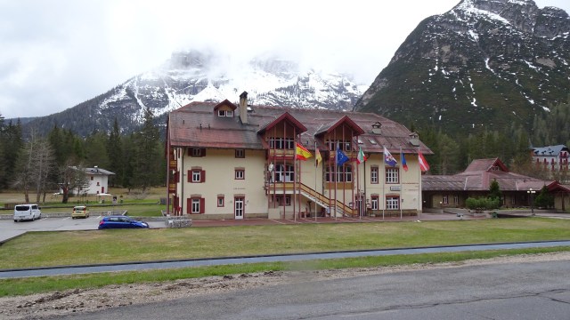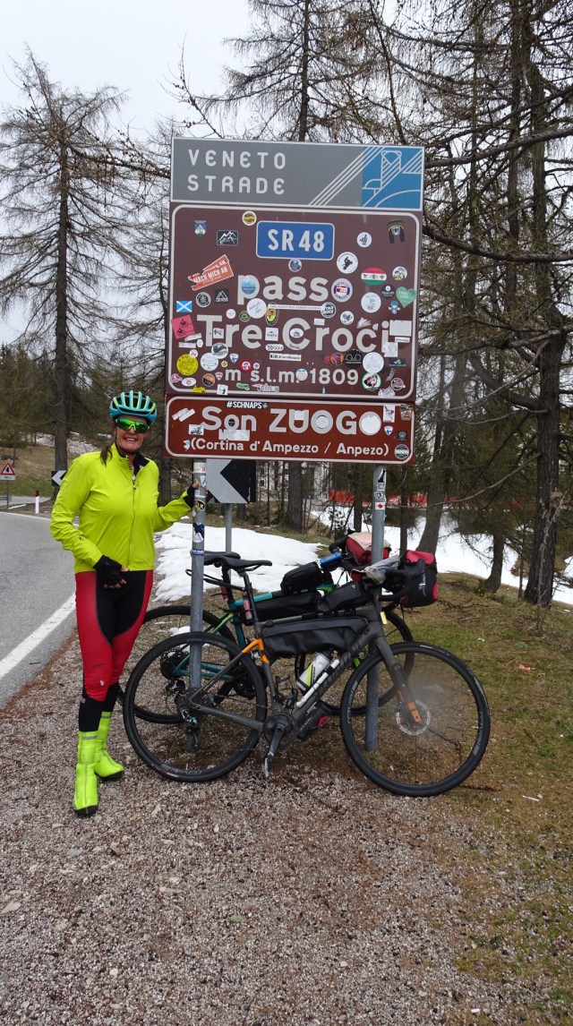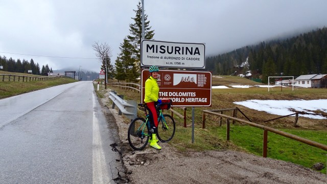 Our ride today therefore was a shorter one of around 40 km, climbing Passo Tre Croce (1809 m) and then heading into Lago de Misurina.