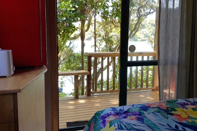 We are staying in a cosy little cabin, akin to an enlarged cubby house.