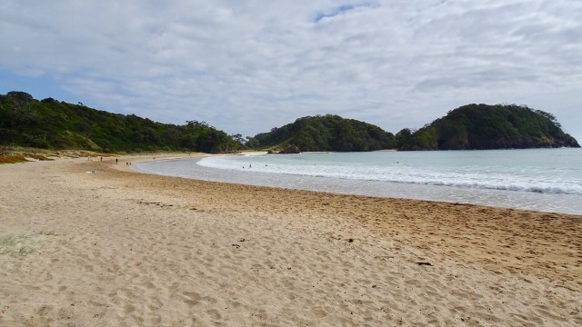 Matapouri Beach is a long crescent shaped beach.