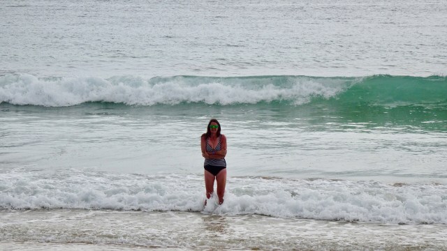 We parked the bikes on the beach and got our bathers our to test the waters.