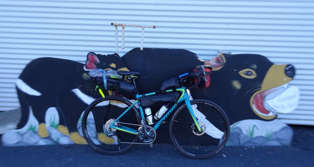 Big first day. 127 km and around 1400 metres climbing, too much dirt and crappy headwinds to finish off.
