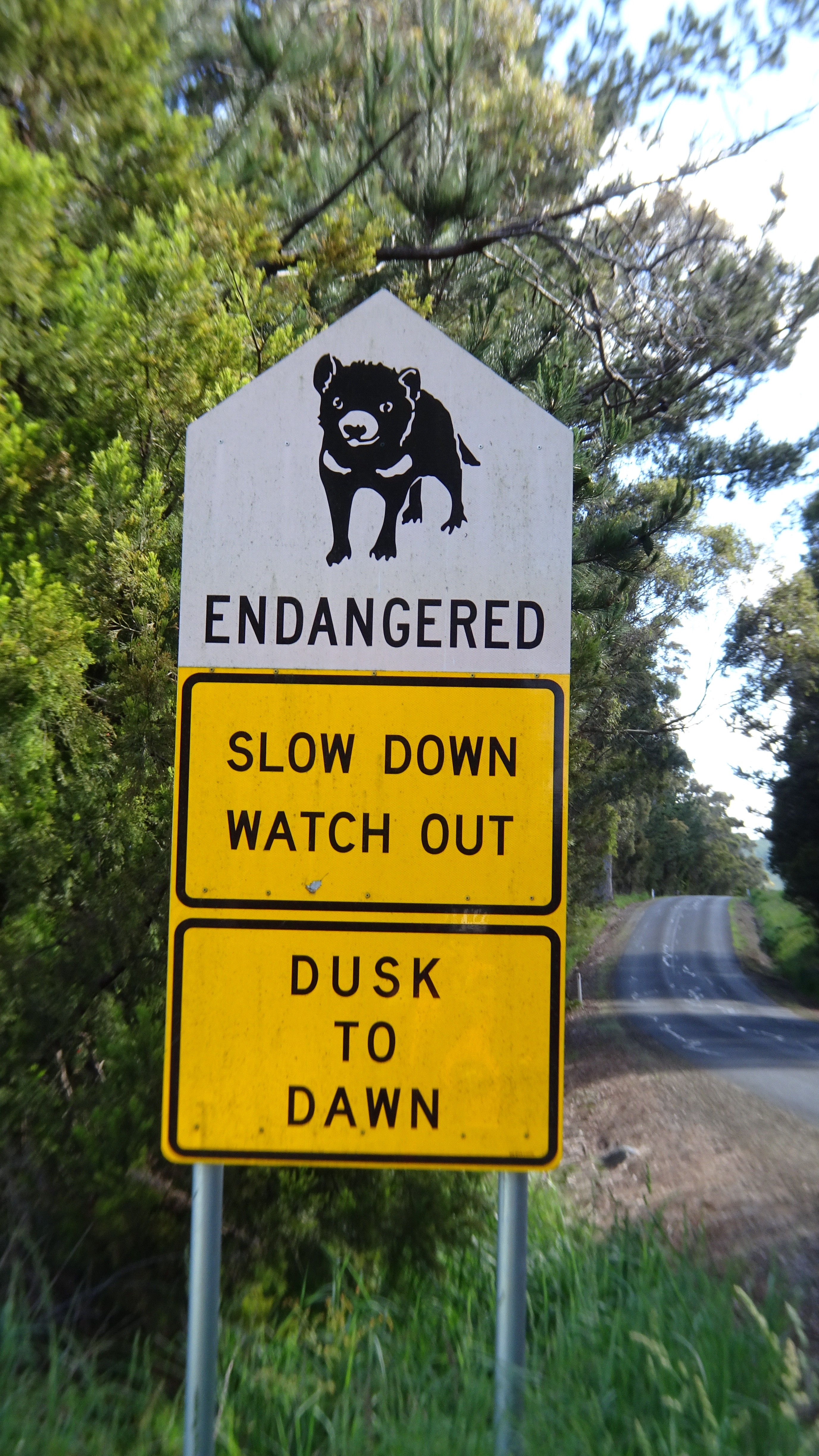 Before we turned onto the dirt road we came across this sign, not an unfamiliar one to most Tasmanians. The Tasmanian Devil survival is threatened due to a facial tumour disease that is a contagious cancer.