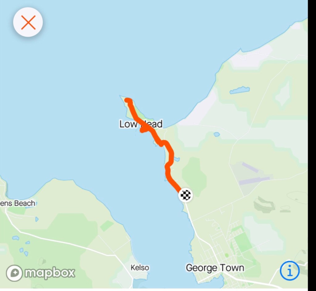 We did a quick reccy to check out food options noting lots of food shops closed. We then headed towards Low Head and checked in to our accomodation. Feeling a bit wind battered ( we checked the current weather reports and it confirmed the wind was 39 kmh NNW).