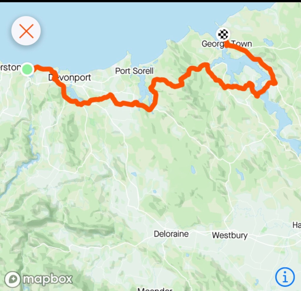 Our plan took us straight out onto the Bass Highway, through Don and skirting around Devonport to Spreyton and then Latrobe. There was no wind and we knew that would not last as the forecast predicted NW winds of 30 kmh plus. Westerly would be ok for a bit, but the northerly could become an issue later.