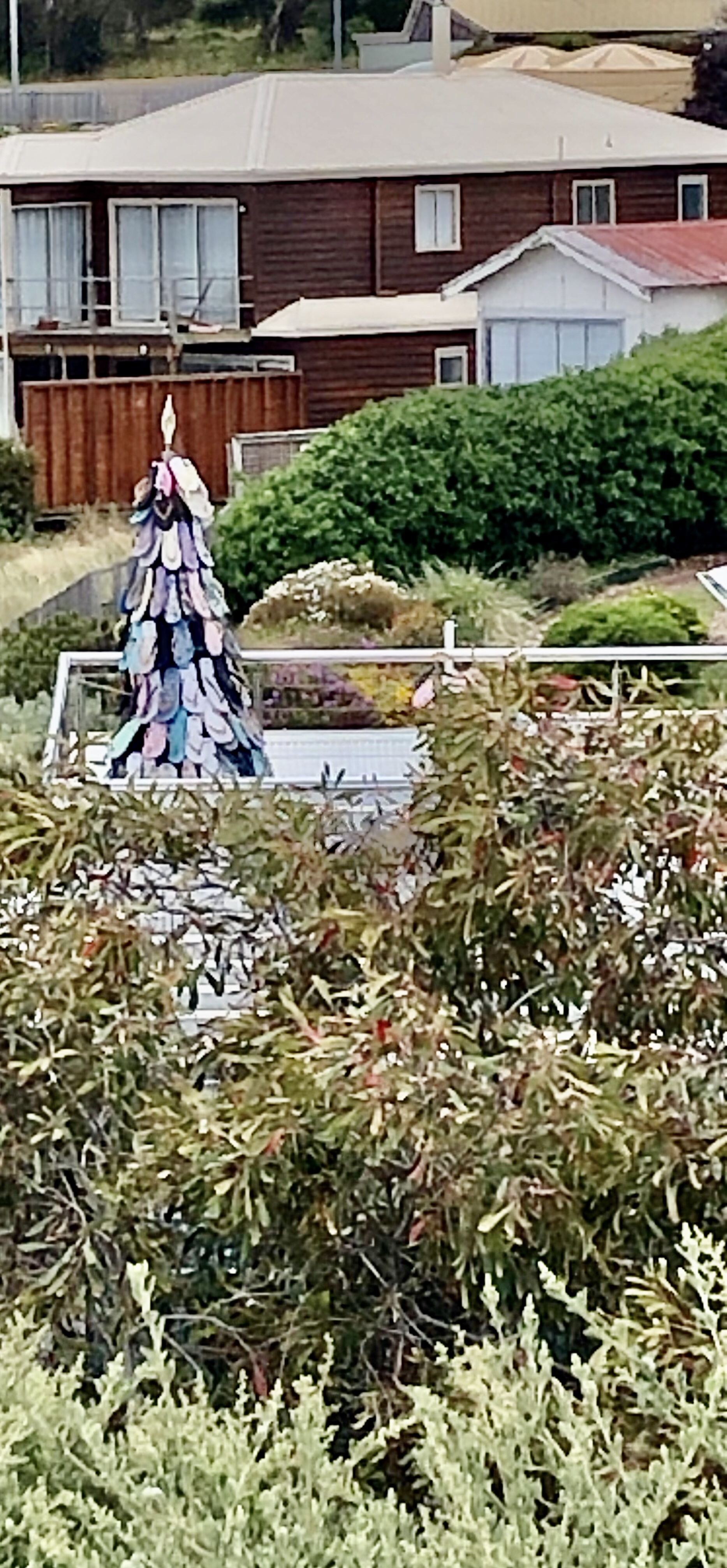 Noted on the back deck of this house was a very Aussie Xmas tree…made with thongs ( known as flip flops, jandals to others).
