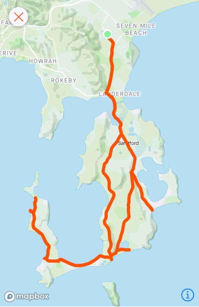 A very pleasant day ride of around 75 km, somewhat undulating with headwinds heading in, tailwinds out. Tomorrow we commence our journey to the West Coast and central region of Tasmania.