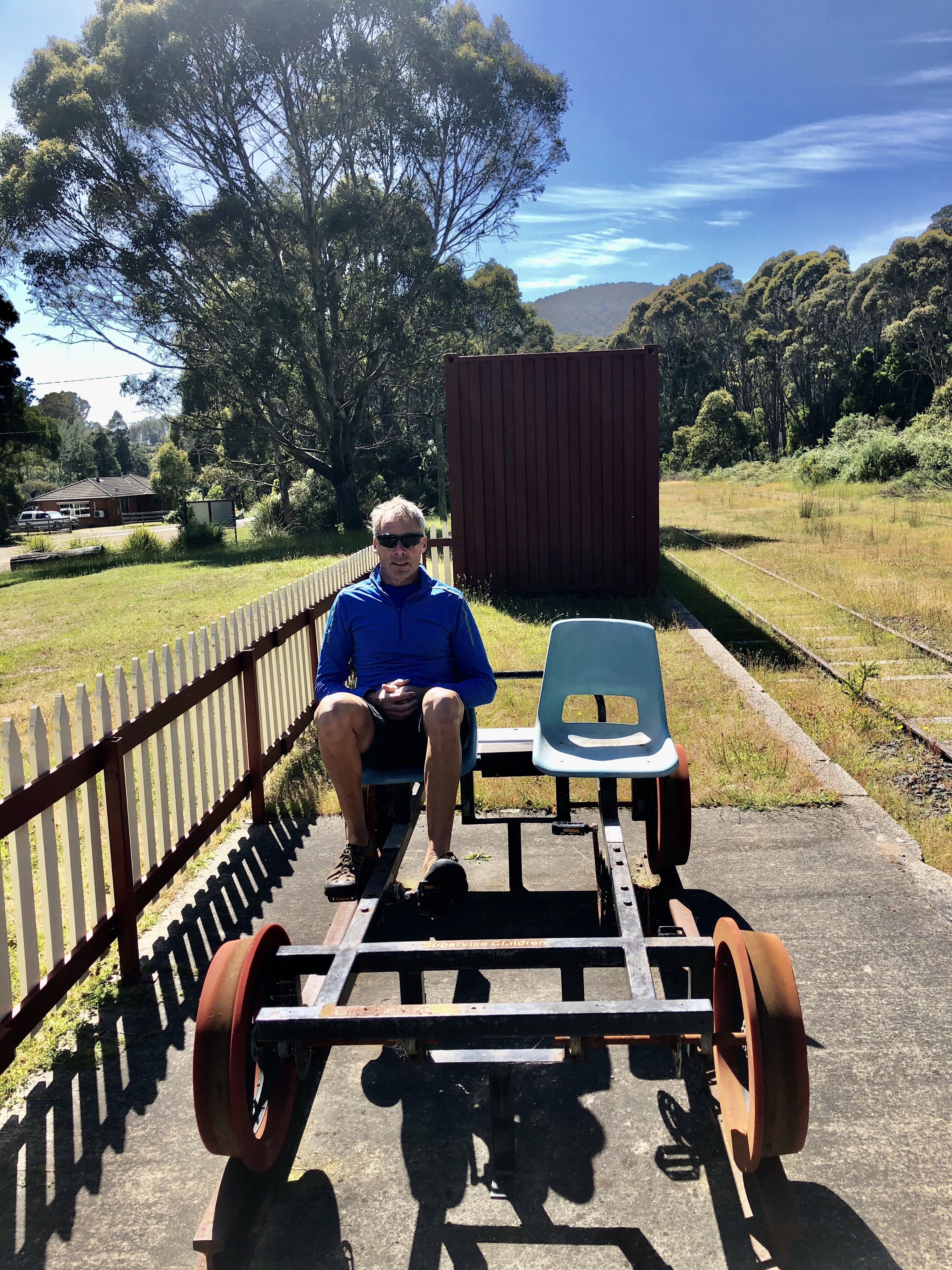 A local tourist business now runs these self propelled carts, on the train line, from Maydena (12 km up the road). Looks like fun.