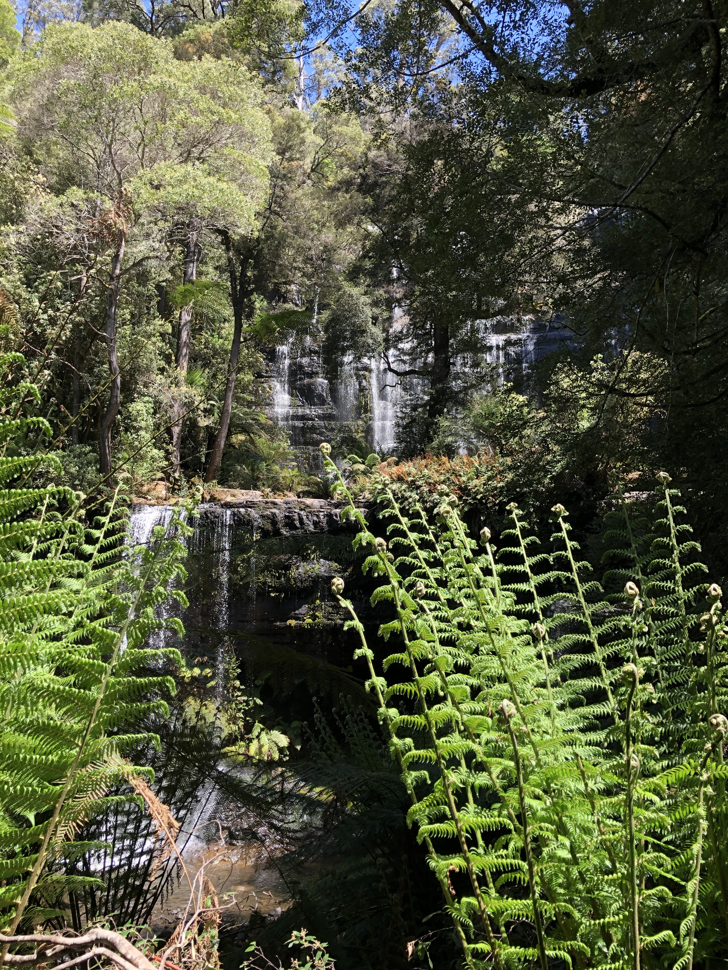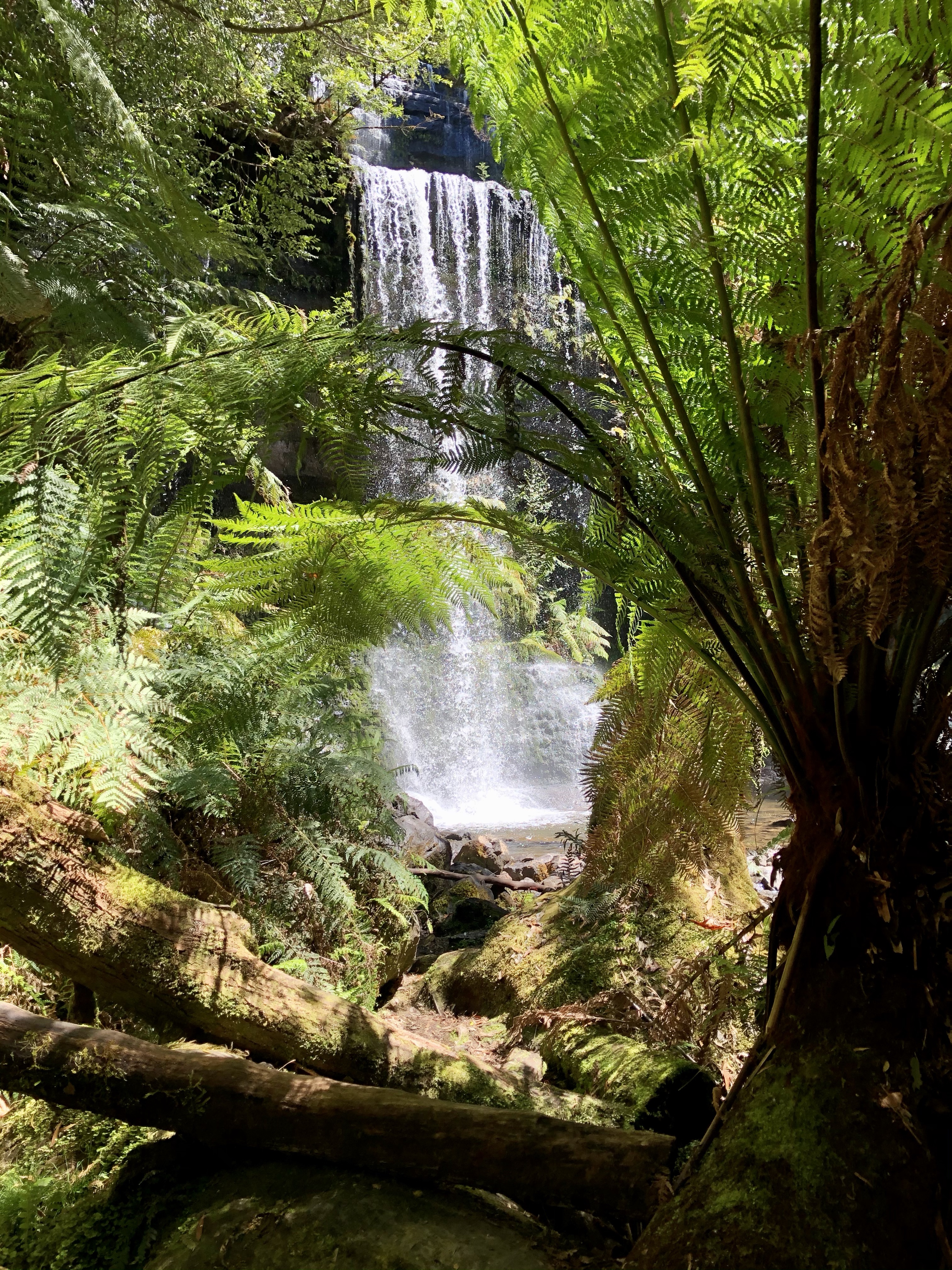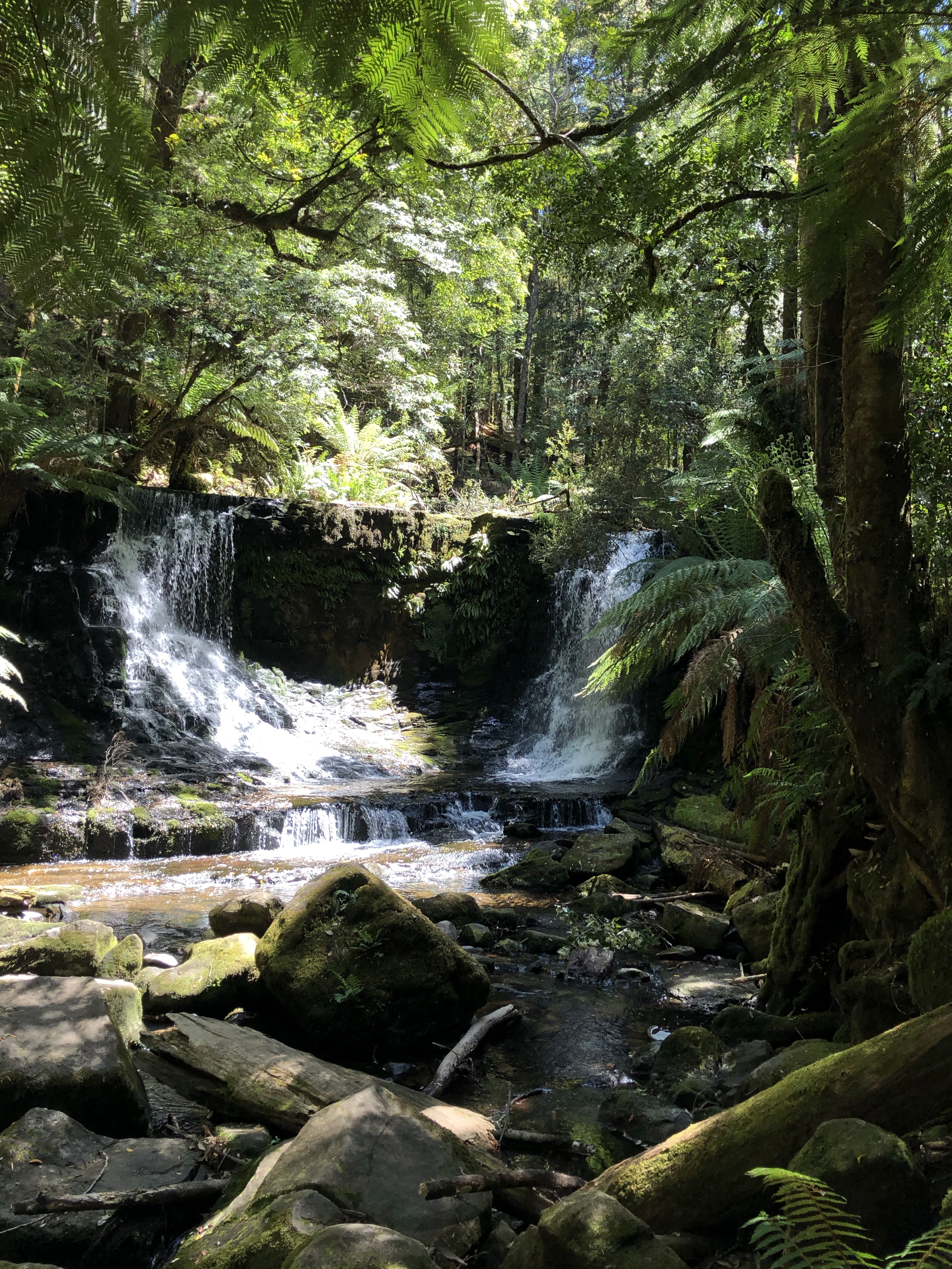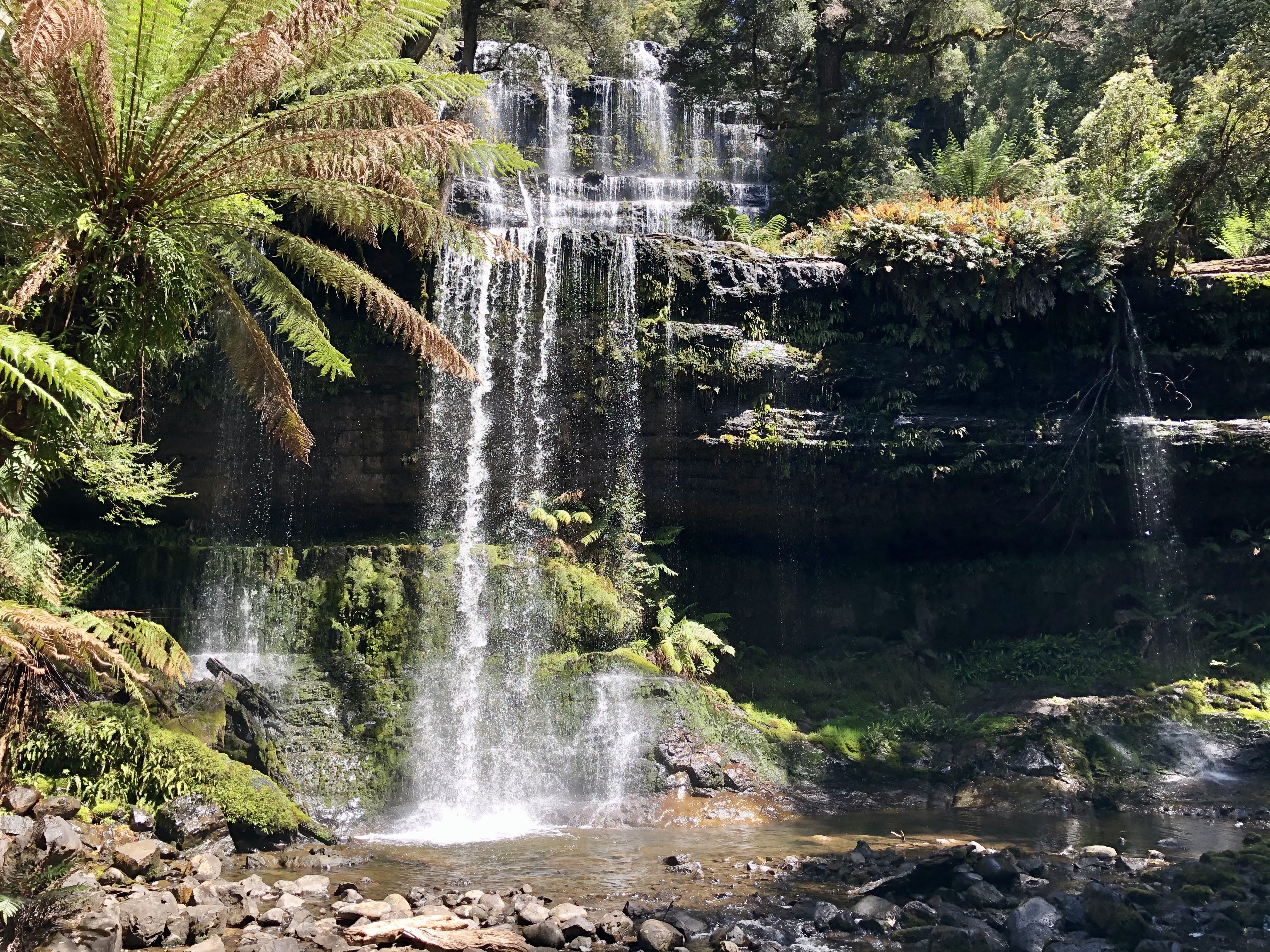 Russell Falls is a spectacular two tiered waterfall, with a lookout point at the base.