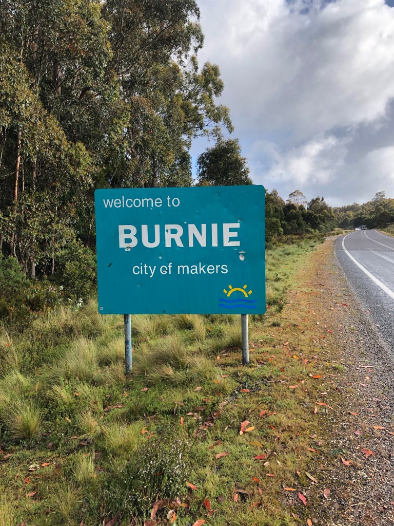 We were relieved to reach Burnie, with the trucks peeling off to the Port and us turning right onto the Bass Highway, 32 km to go.