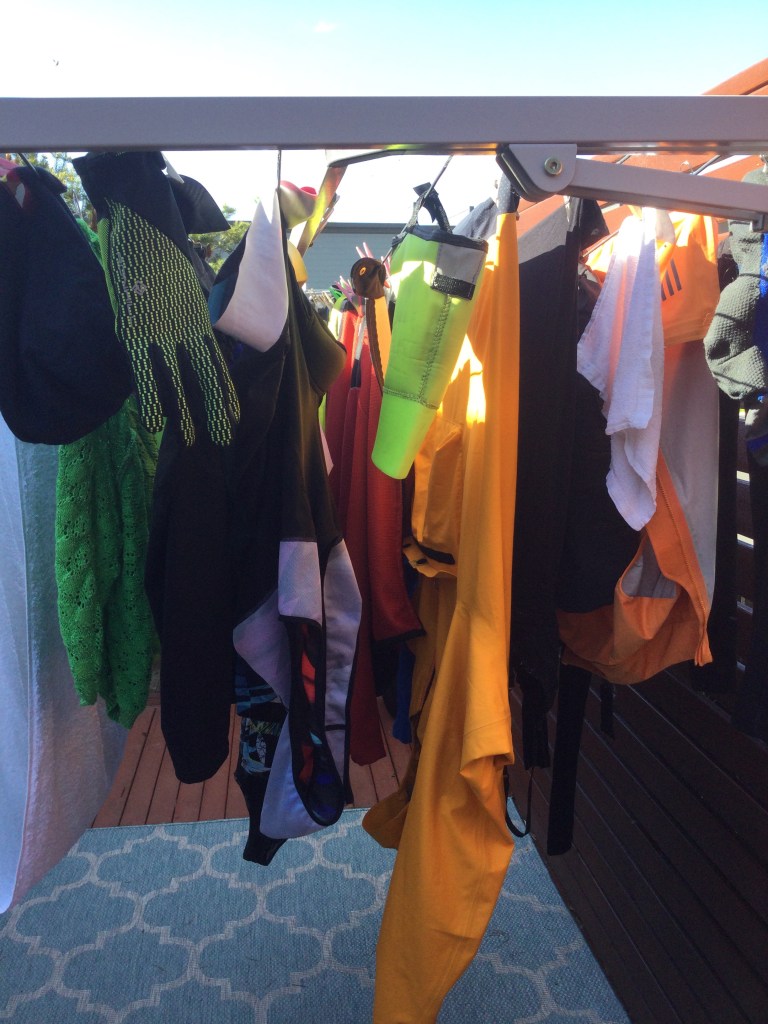 In my case, I had 5 layers on. I wore my Koro yak wool long sleeve vest, then my Assos one piece kit, then my Trek jersey, then my Assos wind jacket followed by my Rapha rain jacket. In addition I had my winter leggings and neoprene booties over my leather riding shoes. But there is more….my Koro yak wool beanie under my helmet, and my Assos long sleeved gloves!! I was cosy 😊