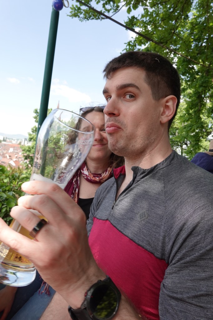 We walked up a big hill to the site of an old Schlossberg now featuring lots of hillside walks and a beer garden.
