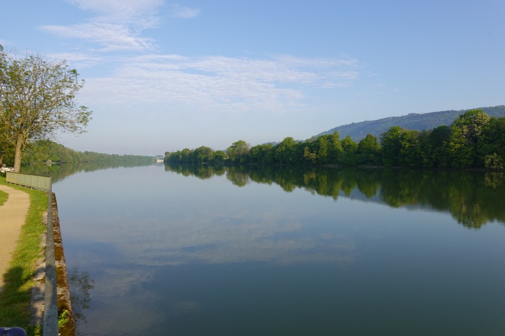 Looking westerly along the Rhine, Switzerland to the left, Germany to the right.
