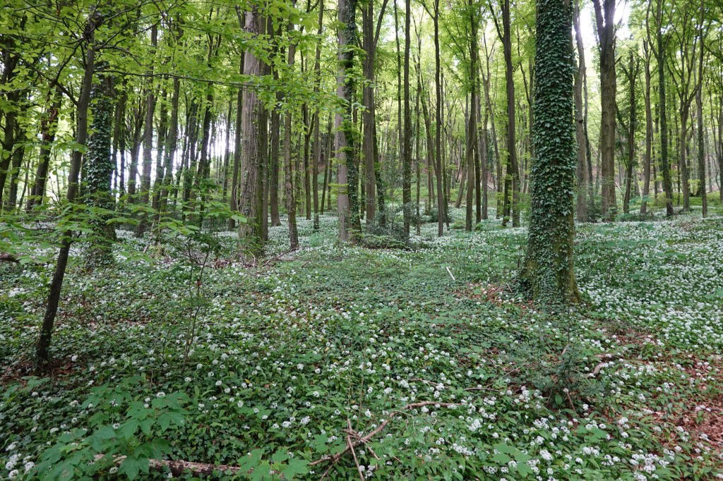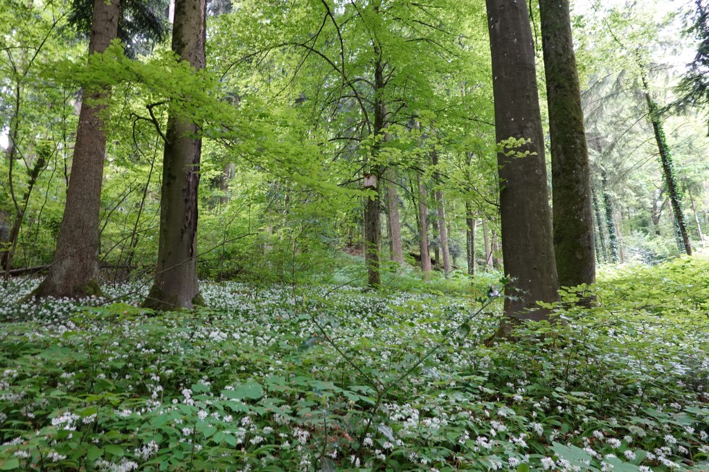 The very pretty forest carpeted with a white flower that is used for culinary purposes. It has a sweet onion smell.