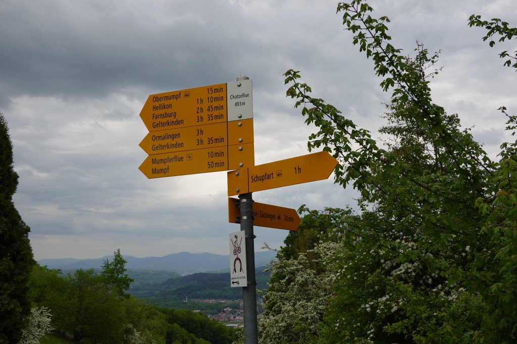 Well signposted tracks clearly indicating direction and distance at Chatzeflue (top of this section of climb).