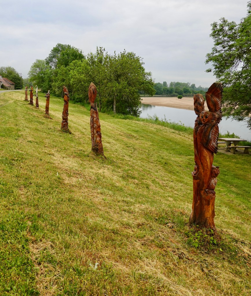In a tiny village a little further on, boasting about three houses stood these seven carved figurines. They delighted me, particularly the first one earlier of Saint Hilaire. They are carved from trees that grew there.