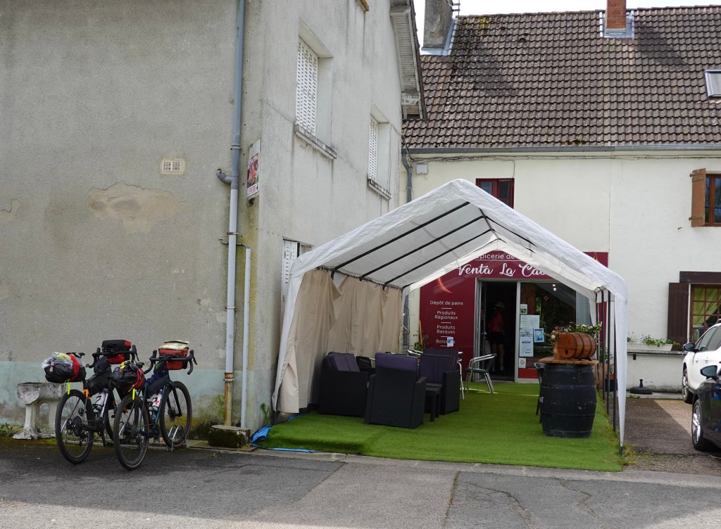 So we made our way ahead, and arrived in a village that had a shop open selling food. We had a nice quiche and treat each.