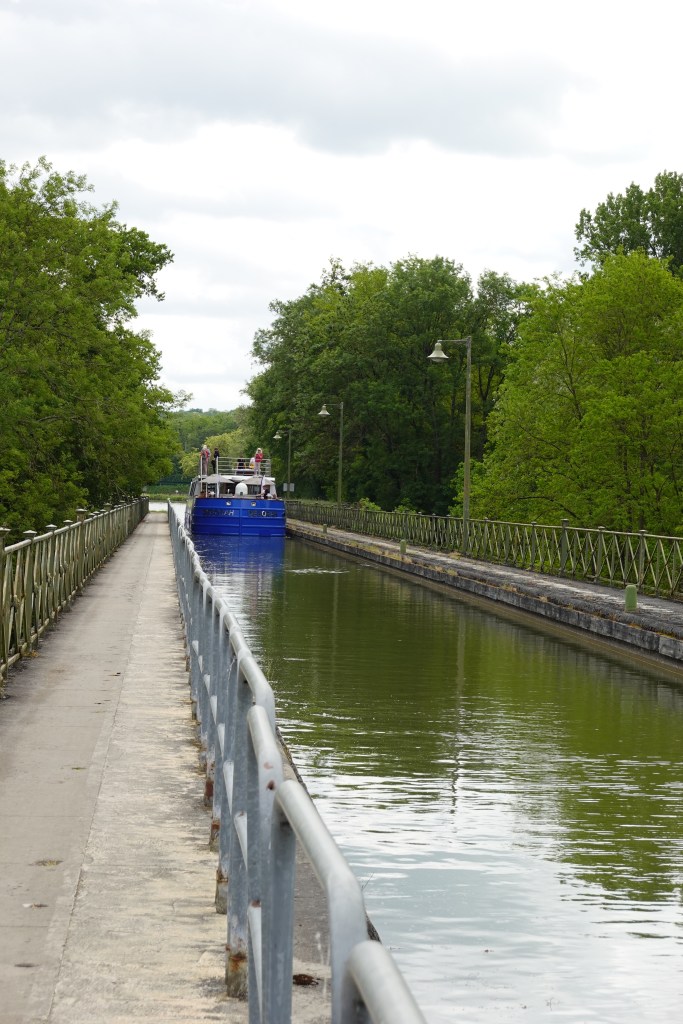 The canal crosses over the top of the Loire, then descends steeply at the next lock. Amazing.