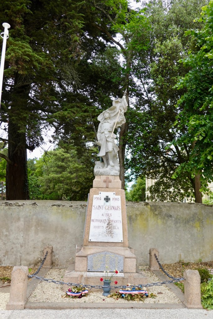 At the next village, Saint Gervais, I found a pharmacy open and had a chat to the pharmacist and purchased some anti spasmodics. Around the corner was this statue of Saint Gervais. We snapped it as we have a friend in New Zealand with the same name, and I vaguely recall him saying something about being named after a Saint.