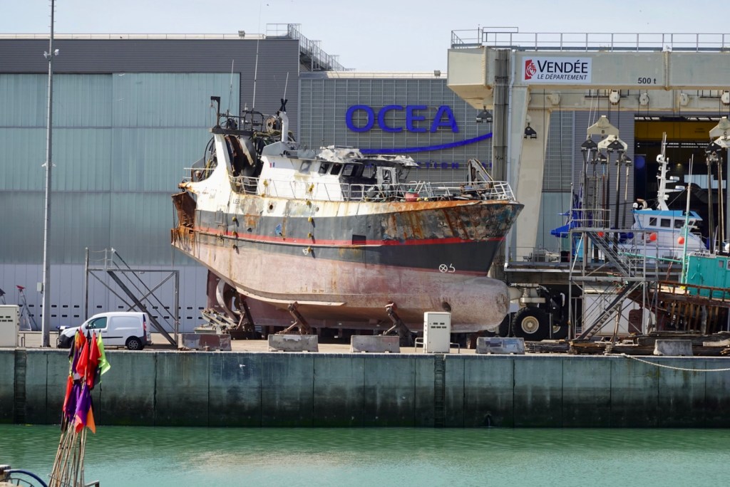 This boat is in dry dock, looks to be a bit of a challenge.