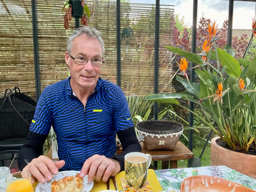 Here is Tony enjoying his breakfast. Shortly thereafter I was sick with a tummy upset and did not finish eating, and later ended up,with a very empty stomach.