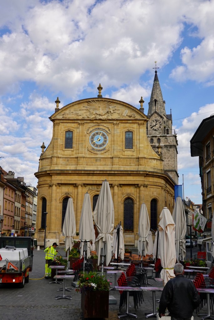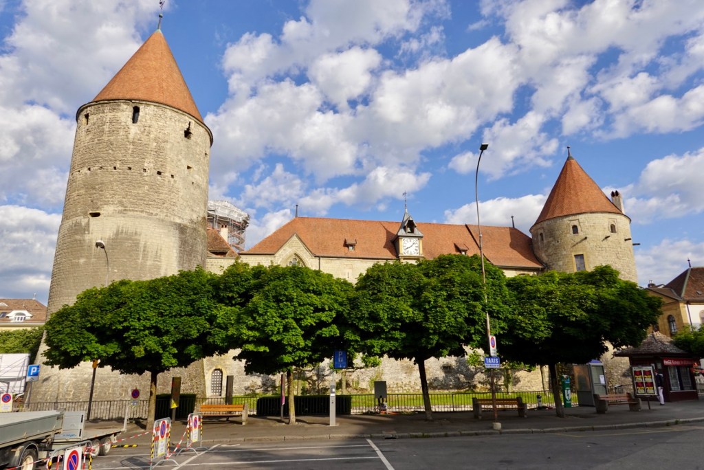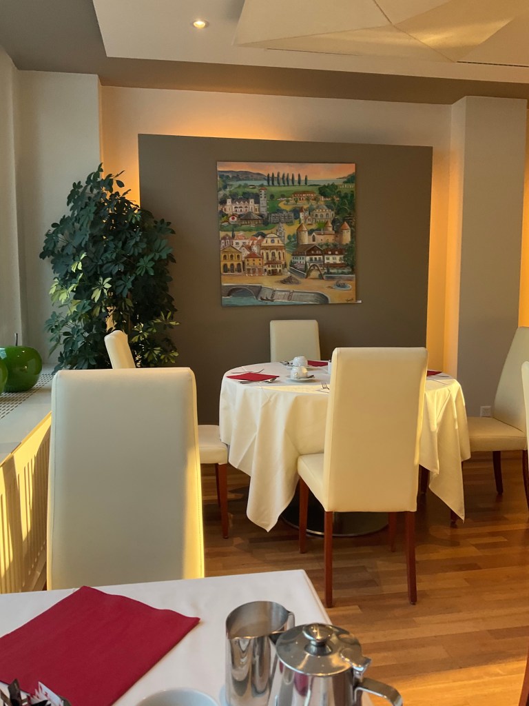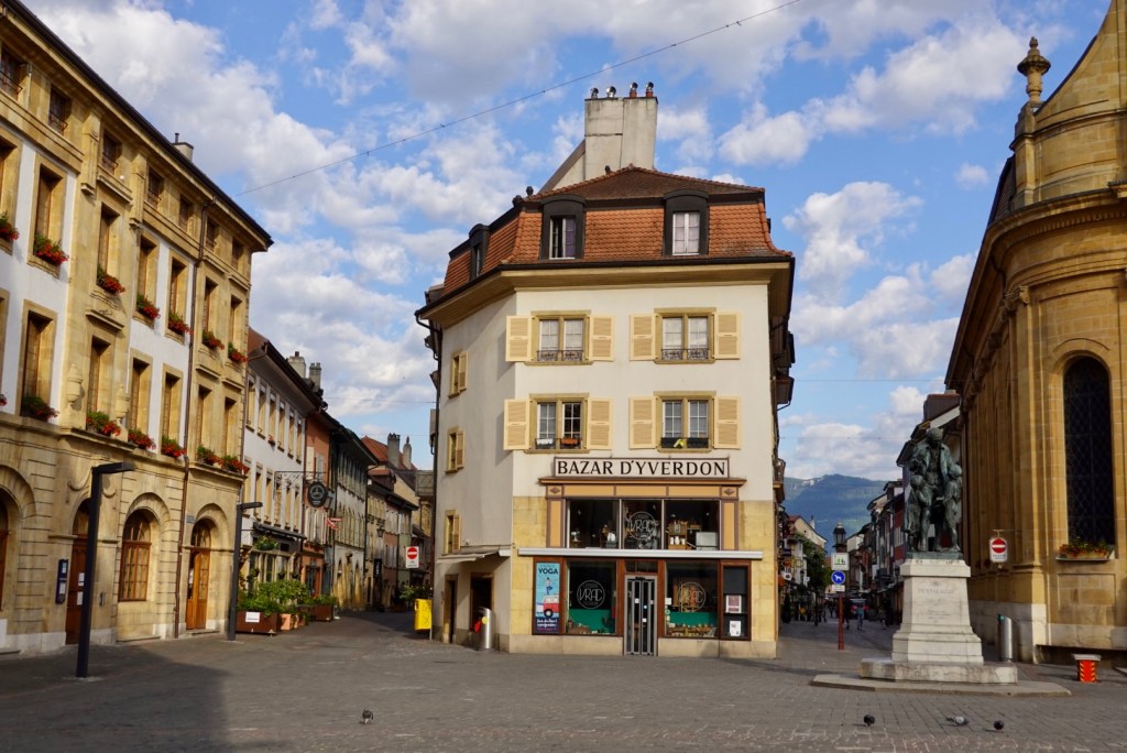 Yverdon-Les-Bains is at the southern point of Lake Neufchâtel. We had wandered through the old town in search of dimmer the night before, sans camera. As I ate my breakfast I looked at the art work on the wall and decided we should detour into the centre on our way out.