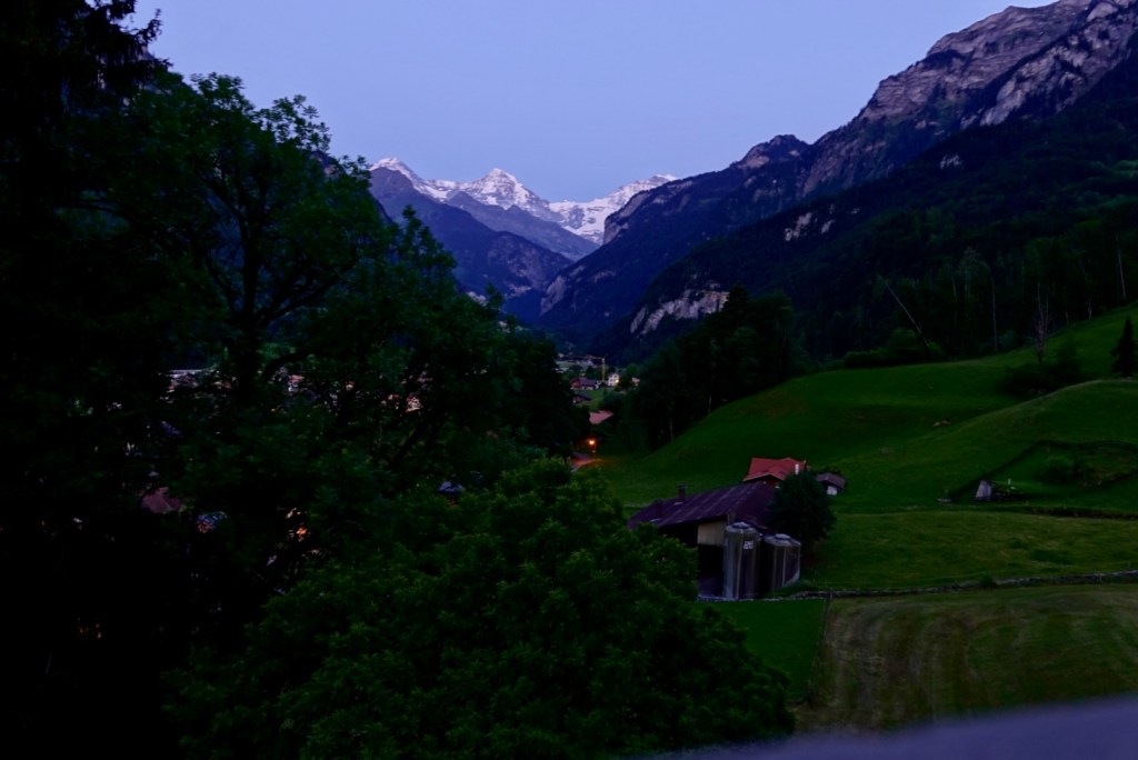 Our room has a direct view of the Eiger, Monch and Jungfrau. In these photos the Eiger is obscured by cloud moving over. Tony kept waiting patiently for the Eiger to clear.