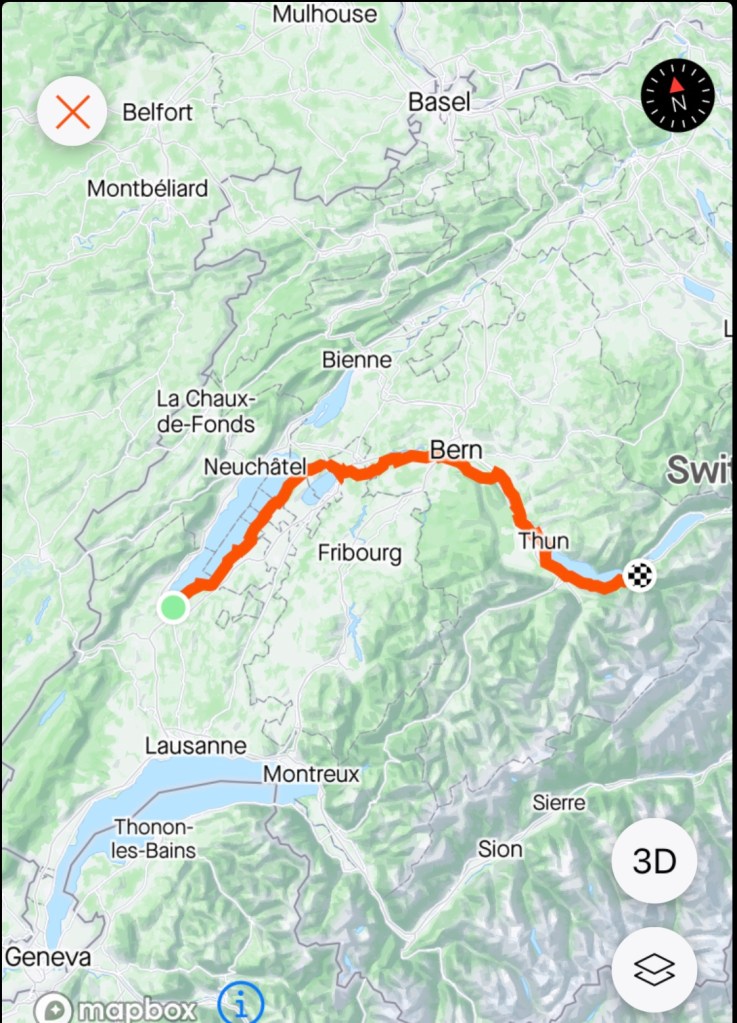 Once on Interlaken we turn right to climb up to the valley where Wilderswil is.