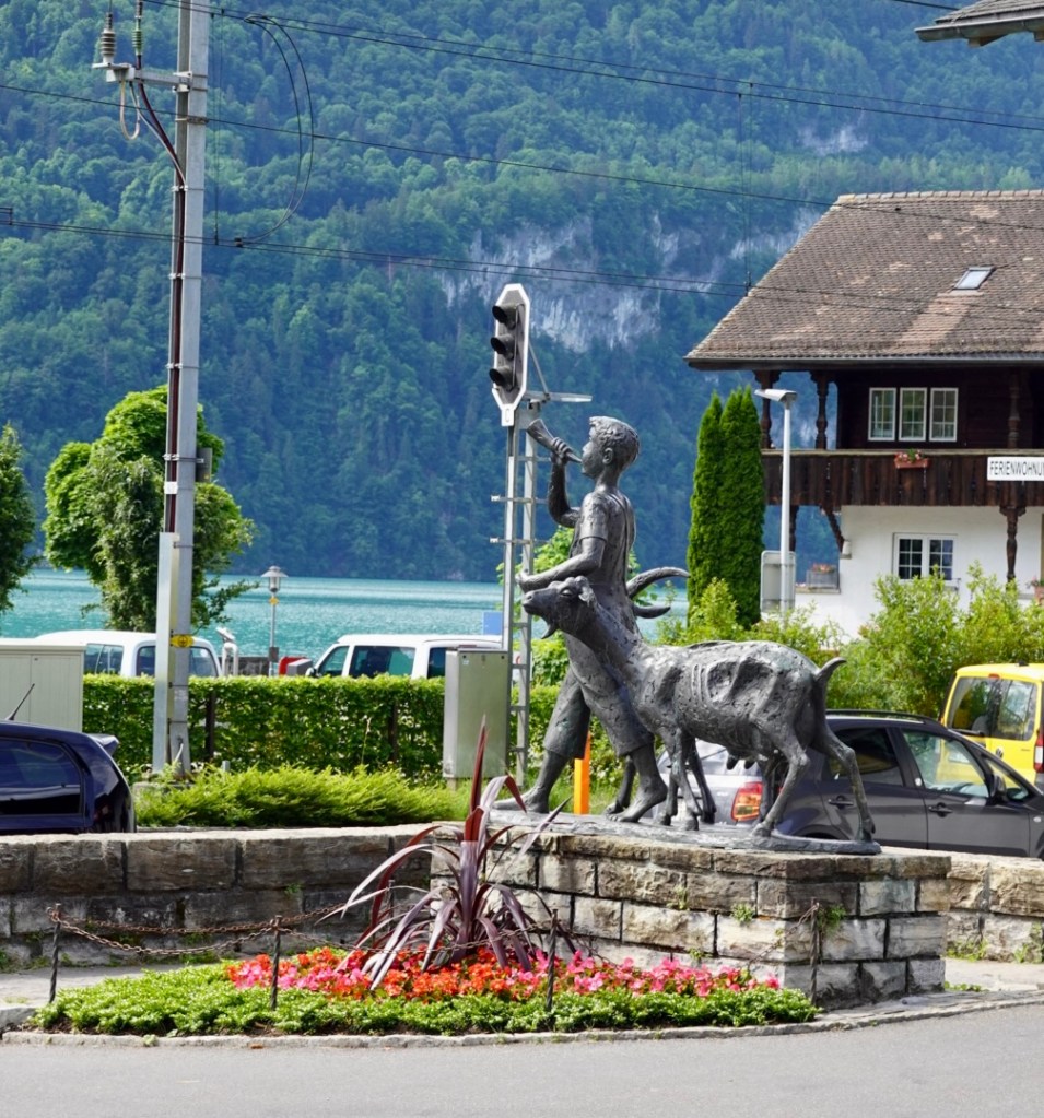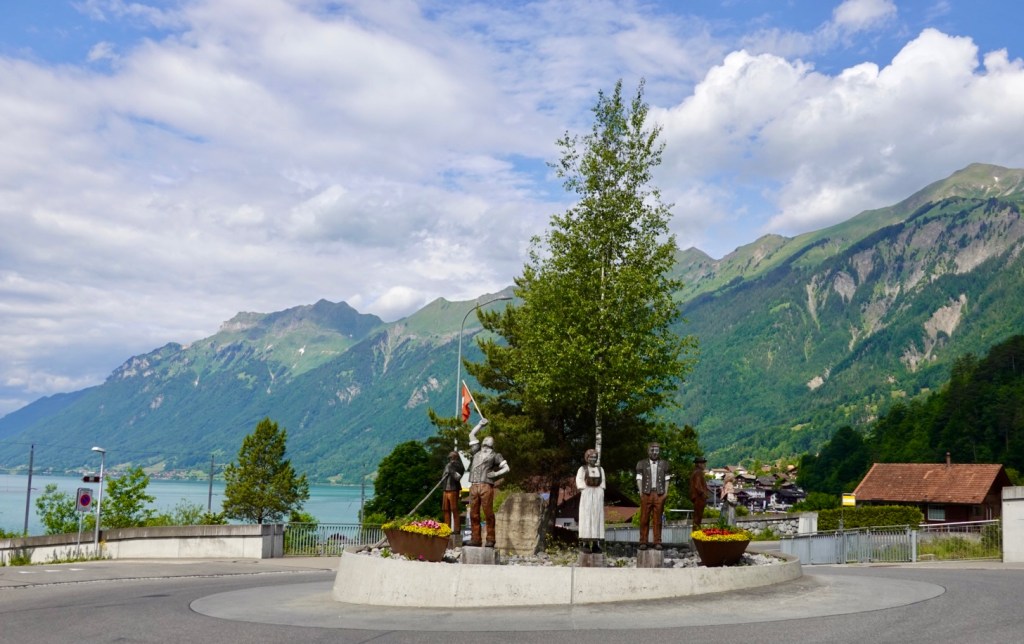We had originally planned to stop for coffee in the town of Brienze, but noted the growing clouds over Interlaken. I did like these two carved figures on the side of the road. There are some very clever people around.