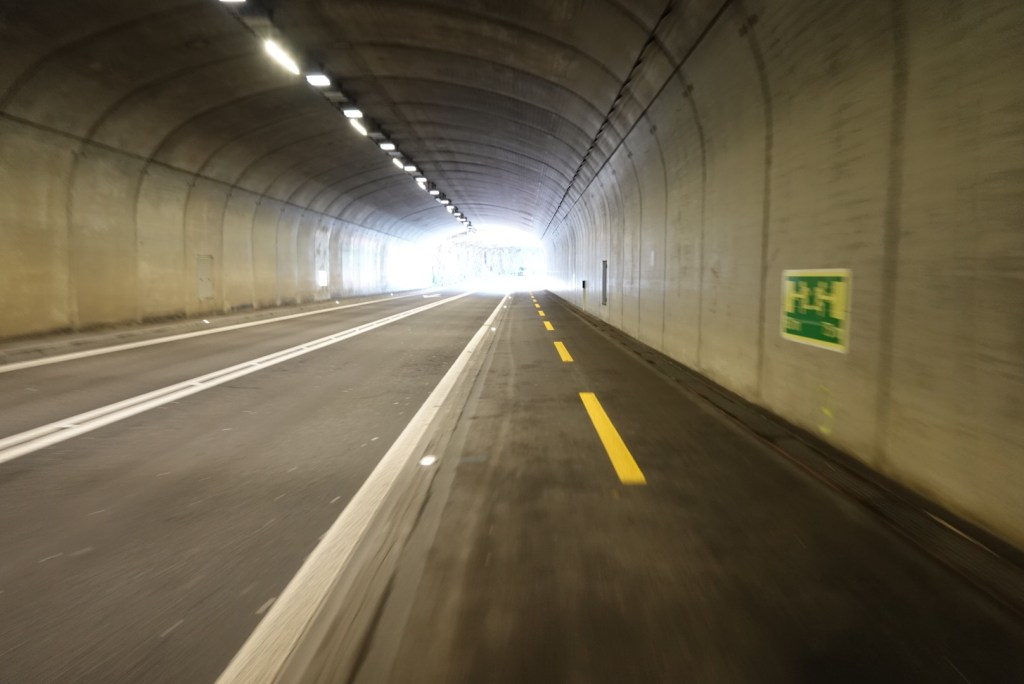 Getting to those mountains was an engineering masterpiece. We rode through multiple tunnels. Some were newer two lane tunnels, with a raised broad footpath for bikes and walkers. Others were older tunnels adjacent to newer ones for cars. The older tunnels were just for cycles and walkers. We must have ridden through nearly one km worth all up.