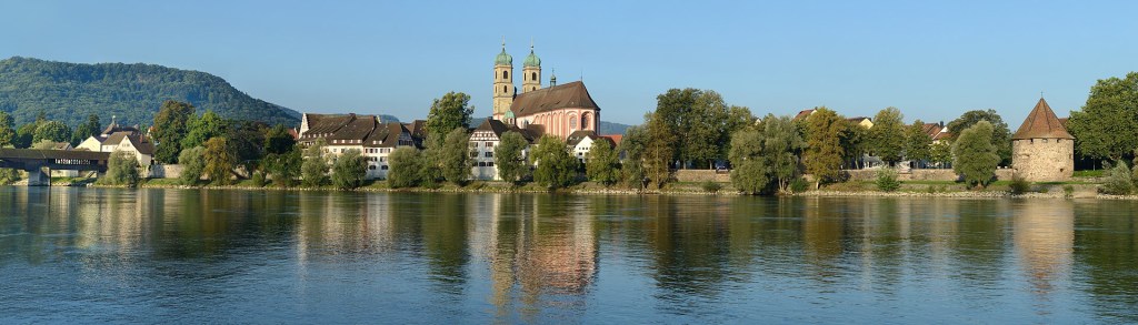 Borrowed photo showing Bad Sackingen from the Swiss side of the Rhine River up from the long wooden bridge.