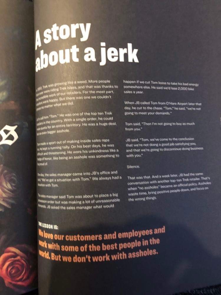 The Trek book! Somewhat of a history book on Trek but also their business philosophies. I do love this particular business lesson : we love our customers and employees and work with some of the best people in the world. But we don’t works with assholes.