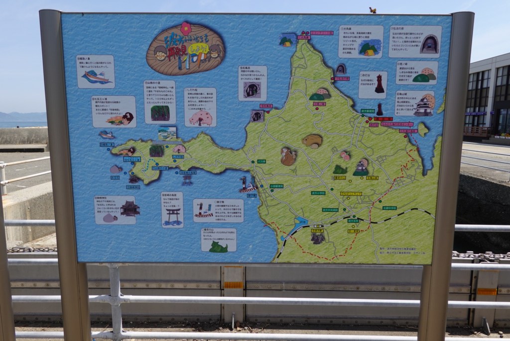 The jut of land to the left is Cape Kajitori and we headed out there winging it. We certainly did not see any wildlife depicted on the board.
