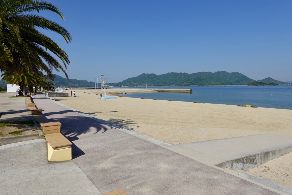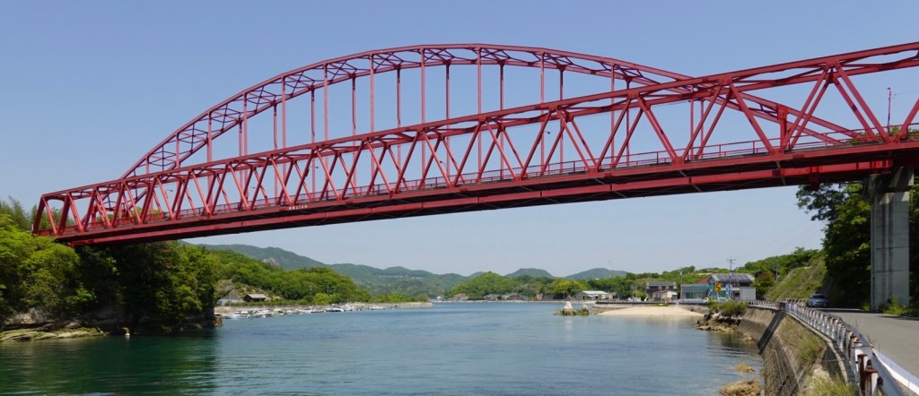 We were closing in on Ominichi, and passed this nice beach, then red bridge.