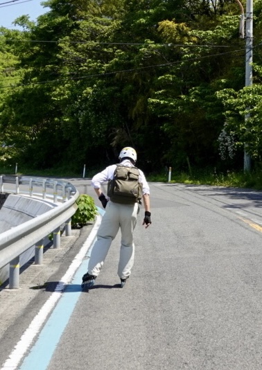 However, as we headed back on our return route hours later, here he was a few bridges up still rollerblading. He appears to have done the kaido on rollerblades.