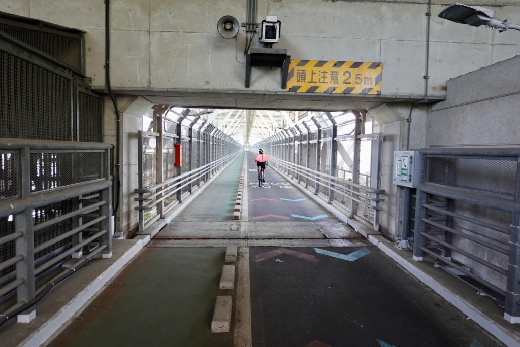 Interesting. We had noted the motor cycles (125cc and below can use the cycling lane) pay a toll of 50 yen per bridge. Money goes into a shute at the end.