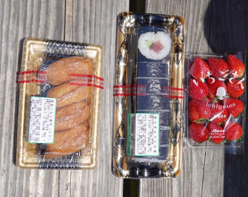 I grabbed some nice strawberries and grapes, and had such a hard time choosing from the many options in the sushi area.