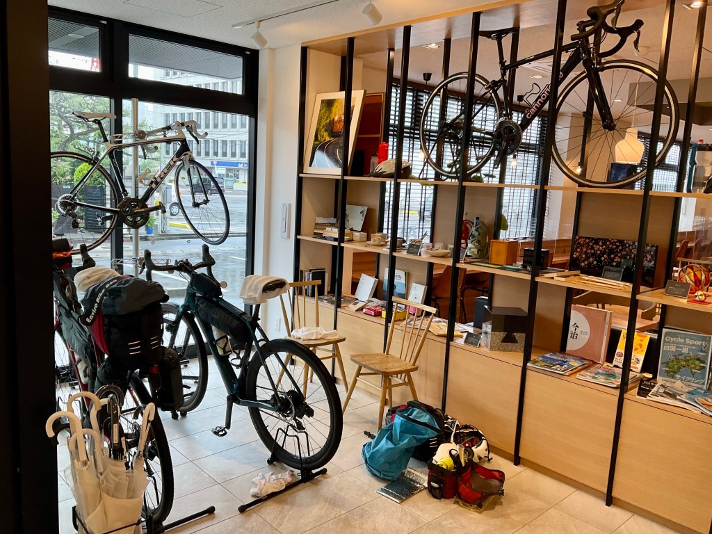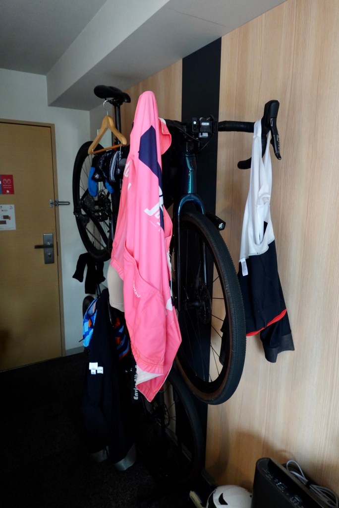 It was 12.30 pm. We were wet and a bit cold as the temperature was lower. Check in was strictly 3 pm, but they provided an area inside to clean our bikes, gave us a bottle of water and somewhere to sit.
