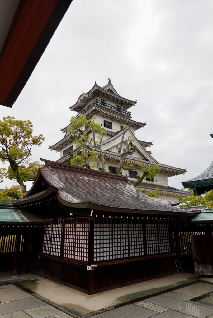 We grabbed umbrellas from reception and went for a walk through the city towards Imabari Castle. An interesting site, featuring a huge seawater moat averaging 60 metres in length, designed to neutralise arrows.