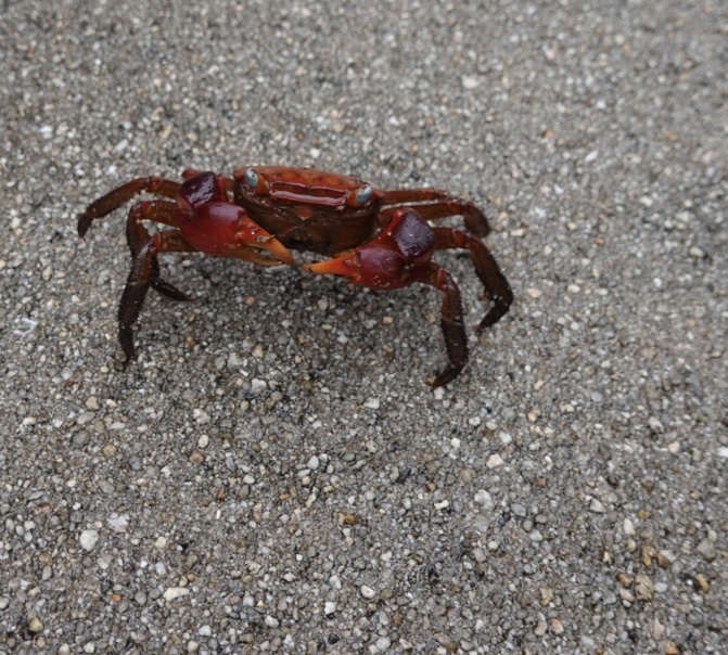 I’ve seen a few of these crabs on his trip. A kind of land crab. Nice colours.
