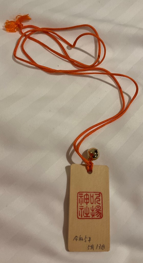As they came past us we watched with great interest. One of the seeming leaders, came up to us, and gave me a wooden token on a string, with a little bell attached.