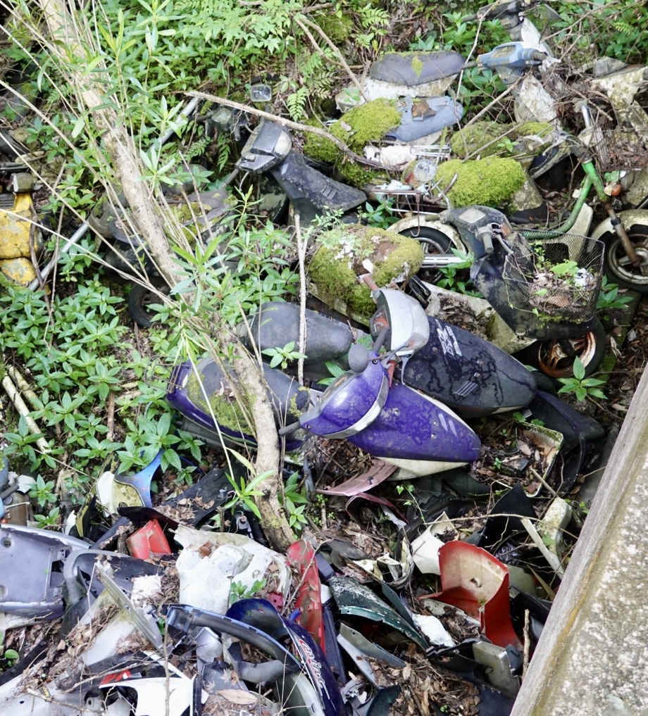 We found a graveyard of motorbikes, some stacked side by side, others stacked laterally.