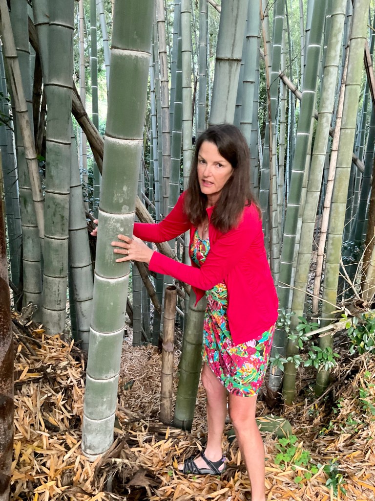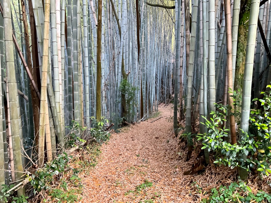 I loved this walkway between stands of massive bamboo. I have my two hands around one, and still a gap.