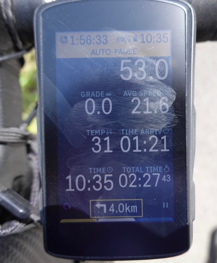 it was getting hot. At 10.30 am it was already 31c. When we stopped maybe 90 minutes later it was hotter again. Not sure what it topped out at but we sure were melting.