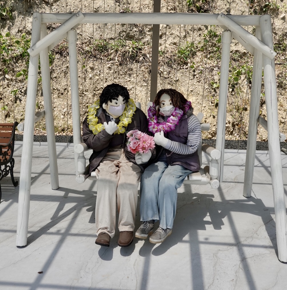 The masked couple on the swings were not at all chatty!