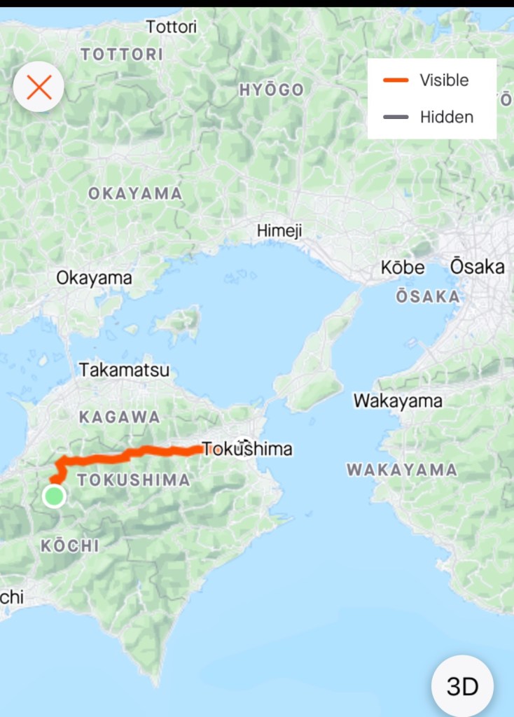 The map below shows,where we are now in relation to Wakayama ( ferry to there as we have our bike bags stored there, plus spending tomorrow afternoon and evening there) and Osaka….our departure point back to Australia.