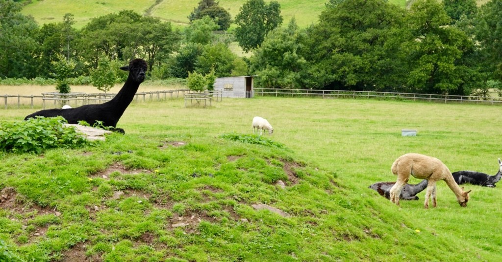 I’m not sure if these are llamas or alpacas, I always get confused. The black one intrigued as as when we talked to him, he stopped chewing. When we stopped he would chew. Maybe he is a she…🤣