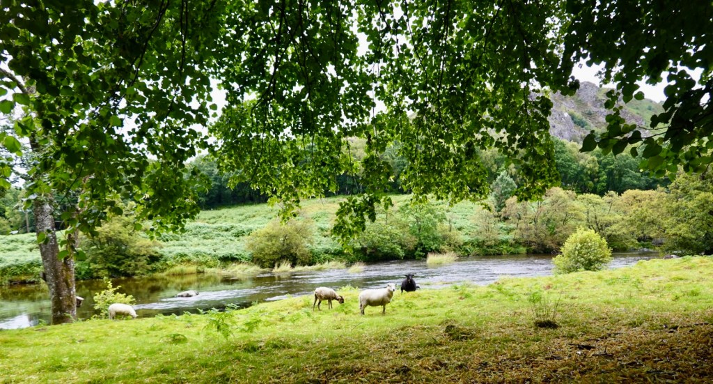 We stopped here, as we thought this was a very pleasant sight by the river, with sheep grazing. Sheep seem to freely roam these parts.