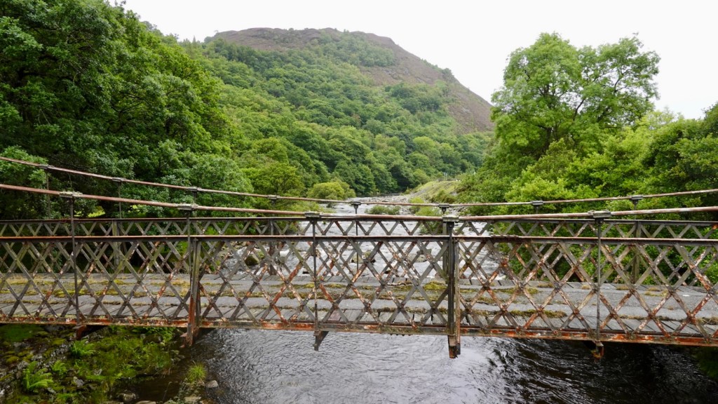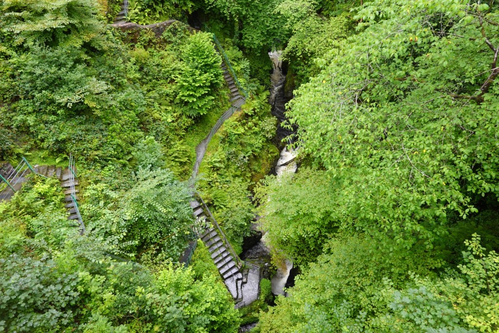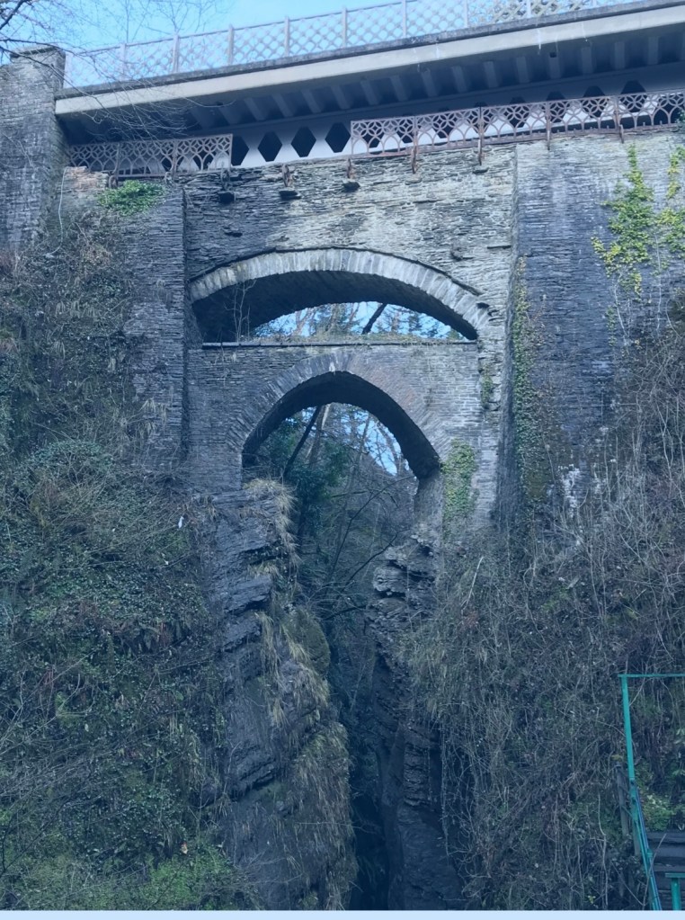 Next stop was Devils Bridge – unique in that there are three separate bridges, each one built upon the previous bridge. The most recent was an iron bridge erected above the older arches in 1901. The original bridge is medieval and the second was built in 1753.