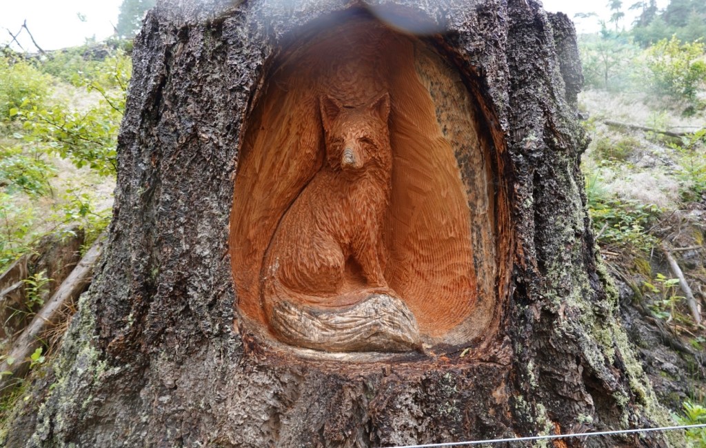 We noted many trees had been cut down. Carvings had been done on numerous.